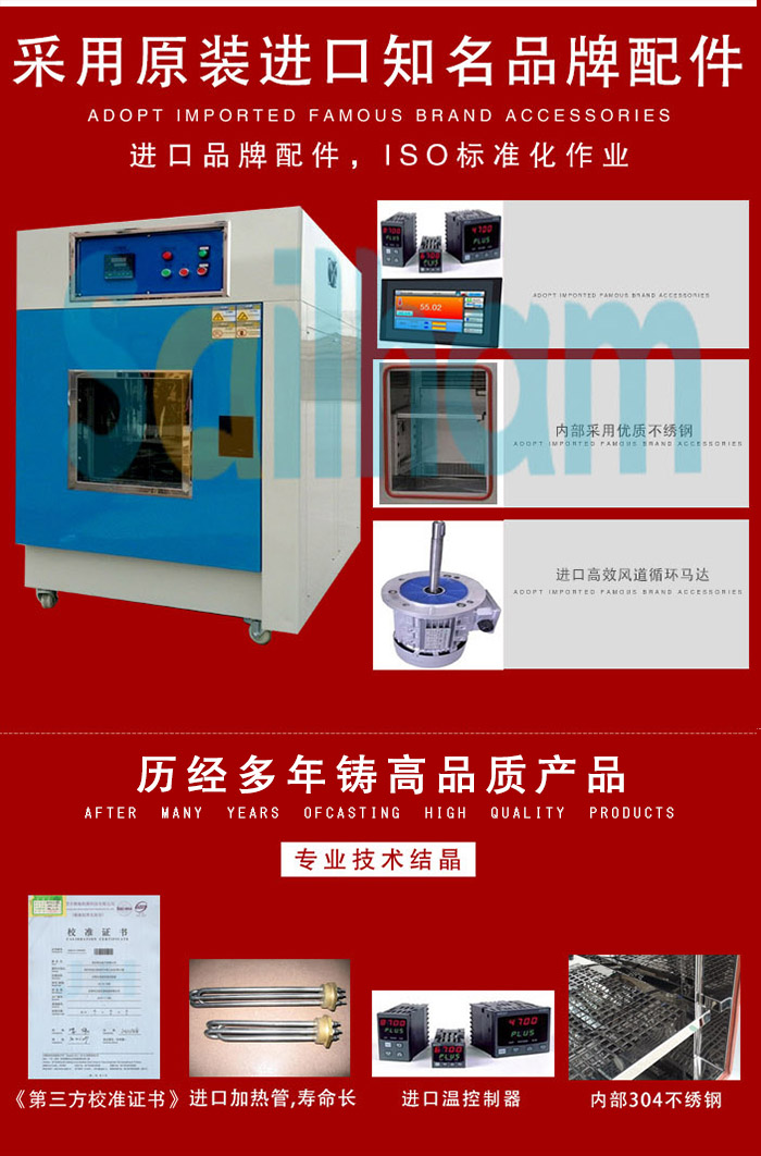正航儀器高溫老化箱優(yōu)點: 1、觸摸屏控制器,外觀大方美觀,控制精度高,穩(wěn)定性能好;其它電控配件均采用進口品牌,使用壽命長,安全性能高,為客戶提供安全放心的設備;2、K型熱電偶溫度傳感器,精度高、感應溫度快、耐高溫、低維護;3、隔熱層采用耐高溫的硅酸鋁棉或巖棉隔熱保溫,設備保溫效果好,擴散溫度少,為客戶用電降低成本;4、采用耐高溫、噪音小、振動小電機,同時應用渦輪型風輪,風壓強風量大,有效的使箱內熱風循環(huán)流暢,使溫度均勻性高。